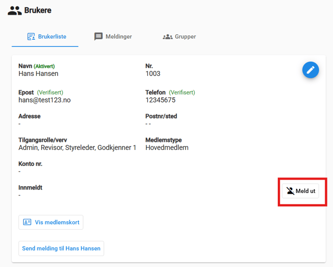 Dersom du kun skal melde ut én person, er den enkleste måten å gjøre det direkte fra personens medlemsprofil:
