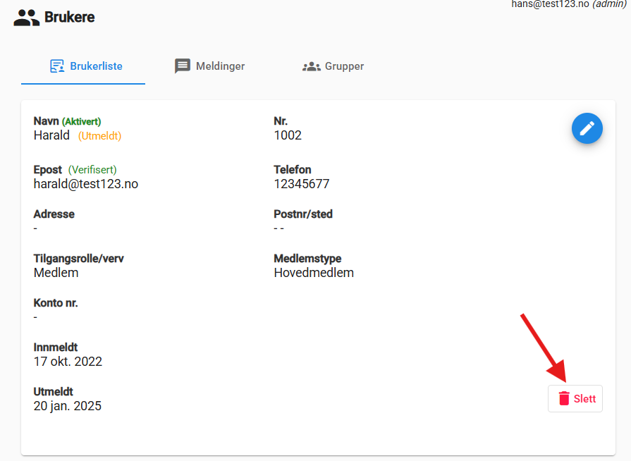 Viktig før du sletter: Systemet tillater ikke sletting før visse betingelser er oppfylt. Før du kan fjerne et medlem, må vedkommende: